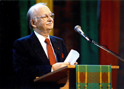 | Oscar Anderson pictured speaking at Homecoming during his tenure as President |
