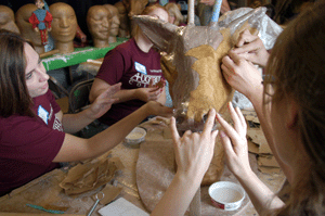 | Incoming Augsburg freshman papier mache over the clay model of a deer head at In the Heart of the Beast Theater on Lake street in Minneapolis. |