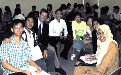 | Robert Bill, third from left, participated in a classroom presentation while in Singapore. |
