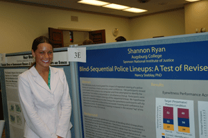 Augsburg College junior and psychology major Shannon Ryan was honored for her research accomplishments in Washington, D.C. on April 25. Ryan was selected in a national competition sponsored by the Council on Undergraduate Research. Joining students from across the nation, she presented the results from her laboratory study "Sequential Police Lineups: A Test of Revised Procedure."